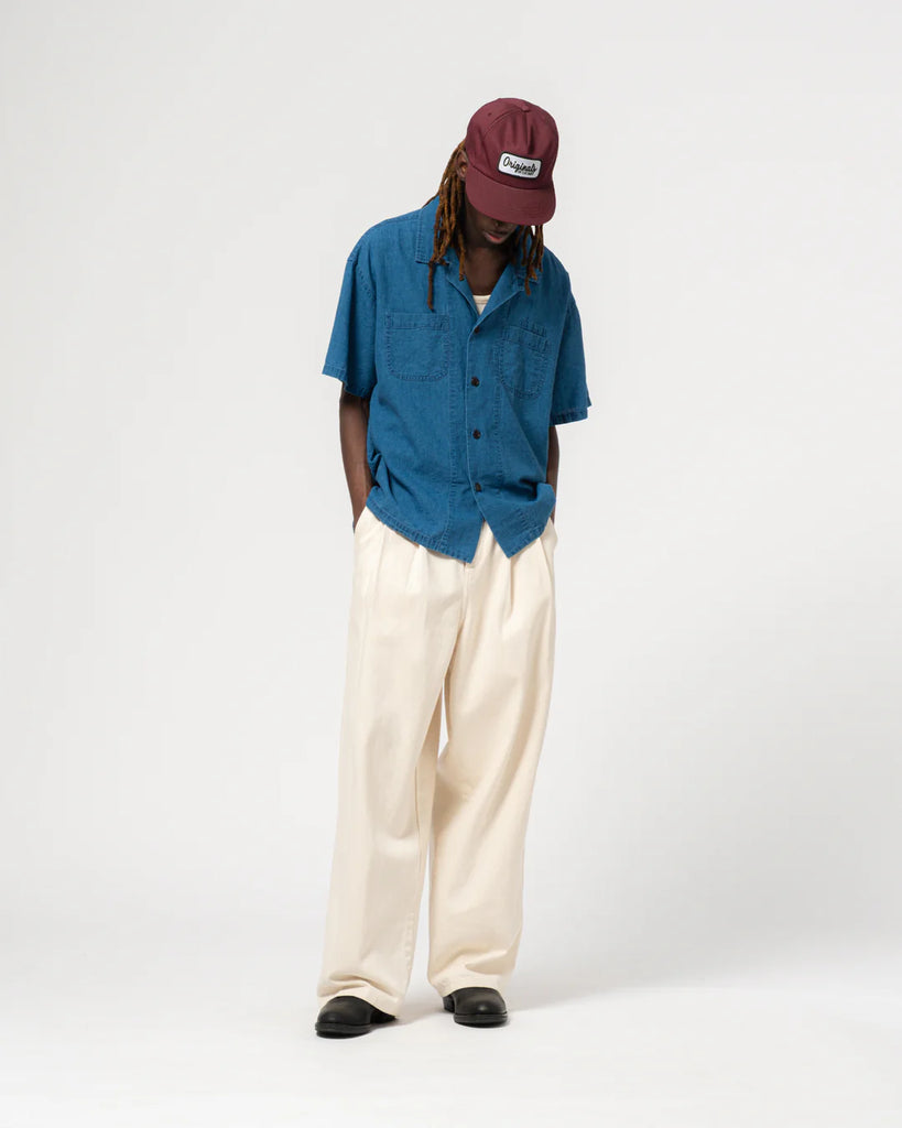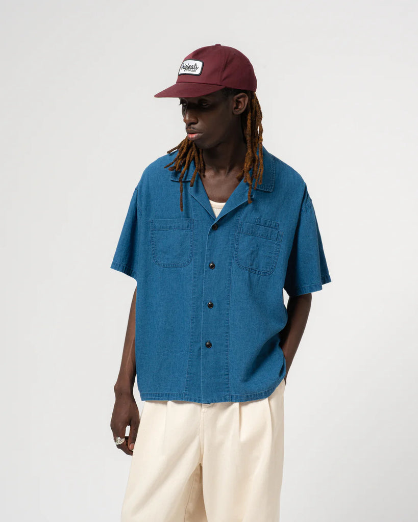 EAT DUST ALOHA SHIRT LINEN COTTON DENIM BLUE
